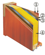 扉の単板とガルバリウム鋼板をサンドイッチすることにより、扉の反りを防ぎます。また、ドアに硬質ウレタンを充填することにより高い断熱性を保ちます。 |